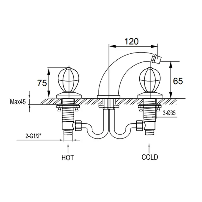 Maier Klass Смеситель для биде, на 3 отв., с донным клапаном, цвет: хром 75 008MCR