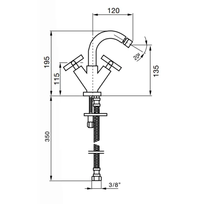 Carlo Frattini Maxima Смеситель для раковины, встраиваемый, на 3 отв., излив 20см., внешняя часть, с донным клапаном, цвет: хром