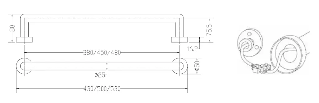 Margaroli Luce 521 Полотенцесушитель электрический 50х5h (int 45), подключение в стену, цвет: chrome 5214501CR
