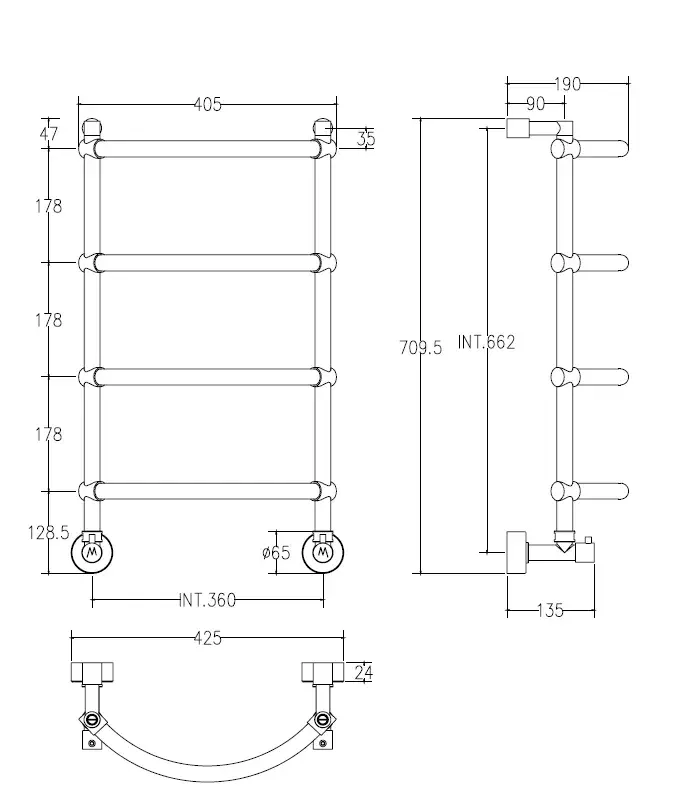 Margaroli Luna 432 Полотенцесушитель водяной для ГВС 42,5х71h (int 36) выгн. нижнее bronze/old brass 4323704OBN