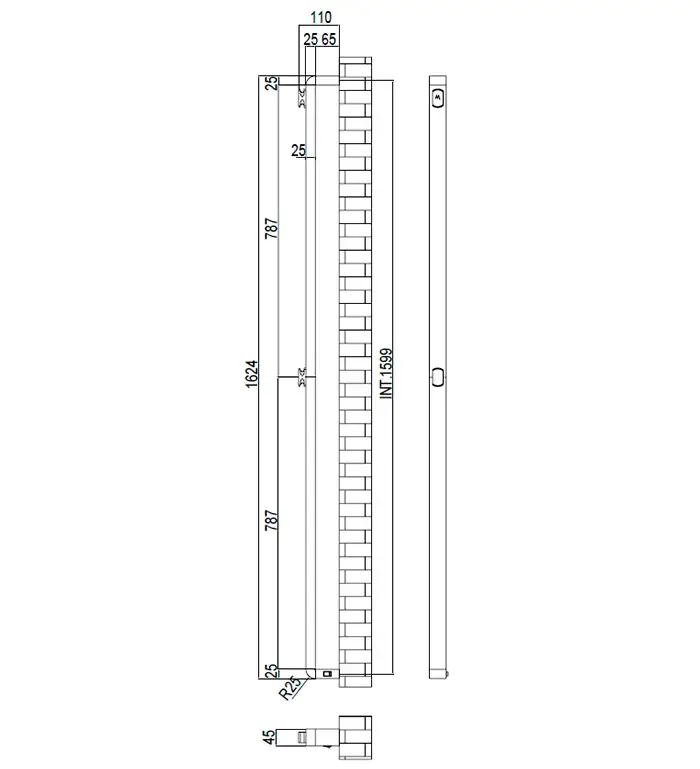 Margaroli Panorama 681 Полотенцесушитель электрический 45х4,5h (42,5) выкл. справа, цвет: matt black 681NOS