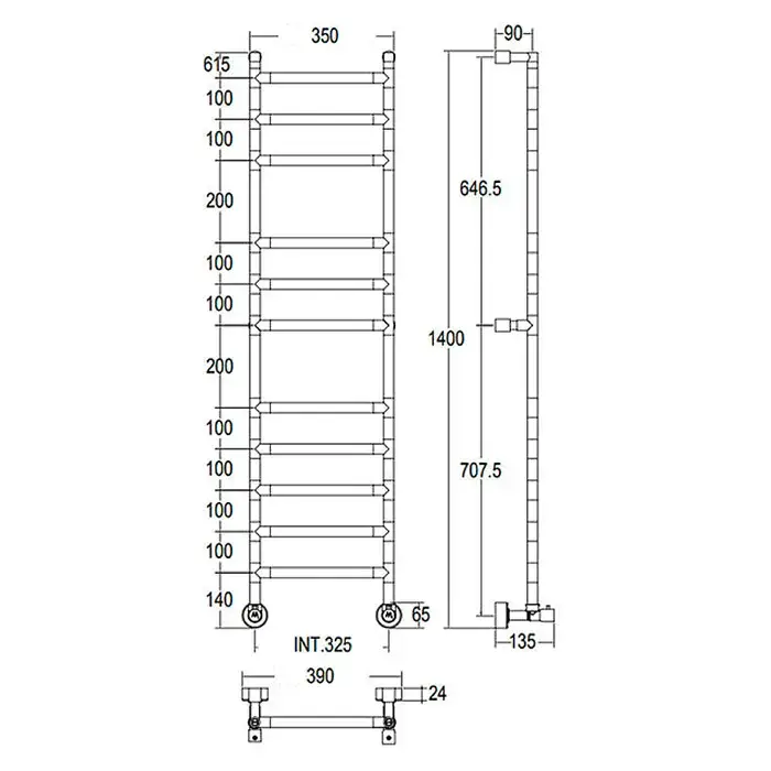 Margaroli Sereno 484/11 Полотенцесушитель водяной для ГВС 39х139h (int 32,5), нижнее, цвет: chrome 4843511CRN