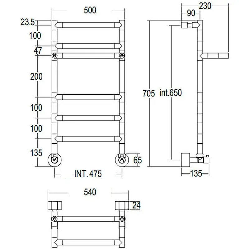 Margaroli Sereno 572 Полотенцесушитель электрический 53х70h (int 47,5) выкл справа, цвет: old copper 5724754OCB