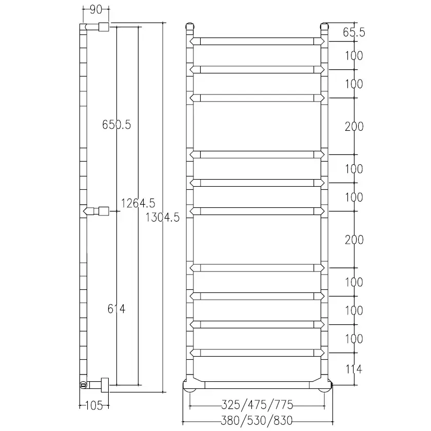Margaroli Sereno 584/8 Полотенцесушитель электрический 67х93h (int 77,5), выкл. справа, цвет: chrome 58477508CRB
