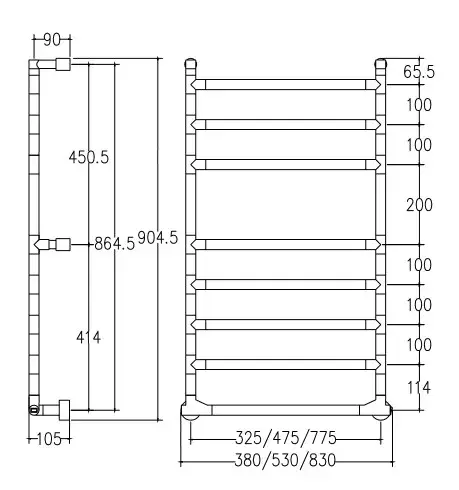 Margaroli Sereno 574/8 Полотенцесушитель электрический 53х90h (47,5), выкл. справа, цвет: chrome 5744708CRNB