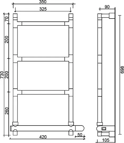 Margaroli Sereno 582 Полотенцесушитель электр. 42х73h (32,5), выкл. справа, цвет: bronze/old brass 5823204OBNB