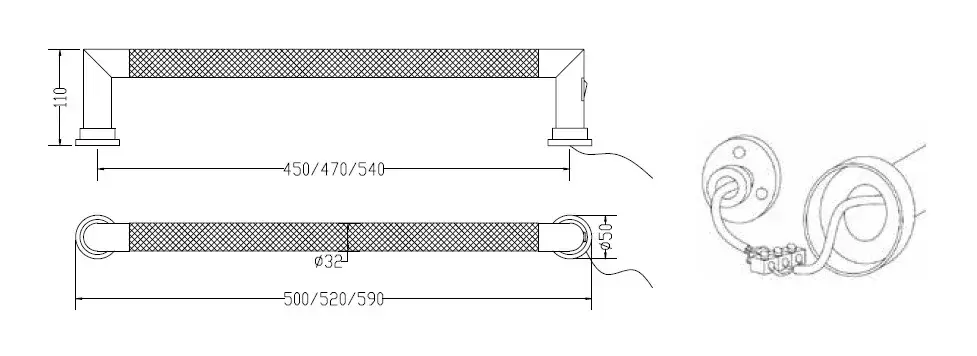 Margaroli Luce 521 Полотенцесушитель электр. 50х5h (45), подключение в стену, цвет: chrome 521450KCR