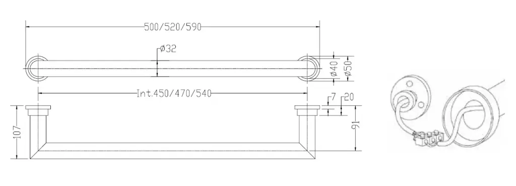 Margaroli Sereno 621 Полотенцесушитель электрический 59х5h (int 54), выкл. справа, цвет: chrome 621540CRS