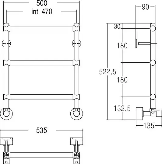 Margaroli Sole 442/3 Полотенцесушитель водяной для ГВС 43,5х53h (int 37), нижнее, цвет: chrome 4423703CRN