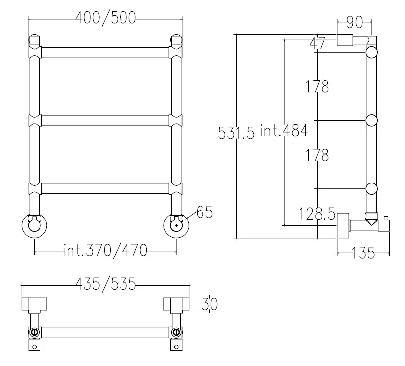 Margaroli Sole 442/3 Полотенцесушитель водяной для ГВС 43,5х53h (int 37), нижнее, цвет: chrome 4423703CRN