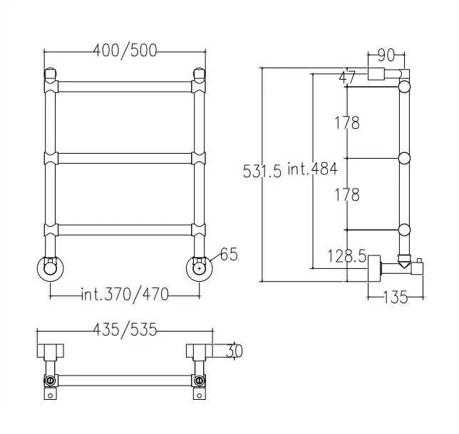 Margaroli Sole 442/3 Полотенцесушитель водяной для ГВС 43,5х53h (int 37), нижнее, цвет: chrome 4423703CRN
