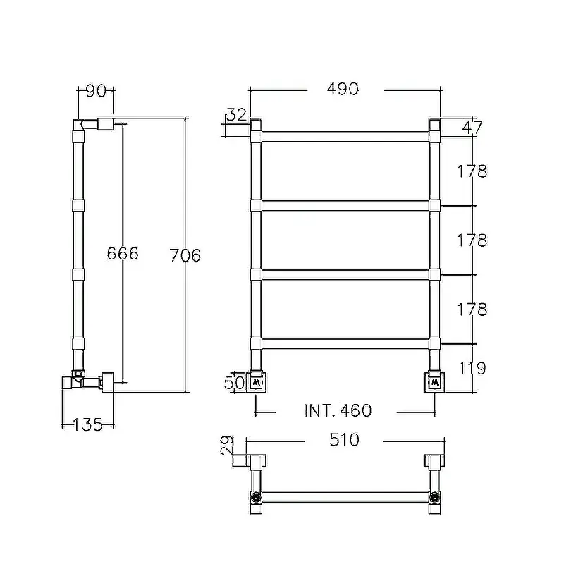Margaroli Sole 514/14 Полотенцесушитель электрический 53х130h (int 47), выкл. справа, цвет: chrome 5144714CRNB
