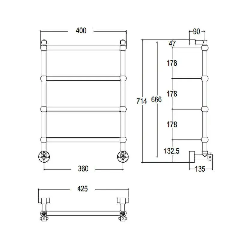 Margaroli Sole 442/TS Полотенцесушитель водяной для ГВС 52,5x89h (int 46) нижнее, цвет: chrome 442TS4605CR