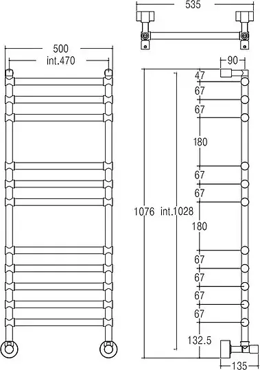 Margaroli Sole 514/14 Полотенцесушитель электрический 53х130h (int 47), выкл. справа, цвет: chrome 5144714CRNB