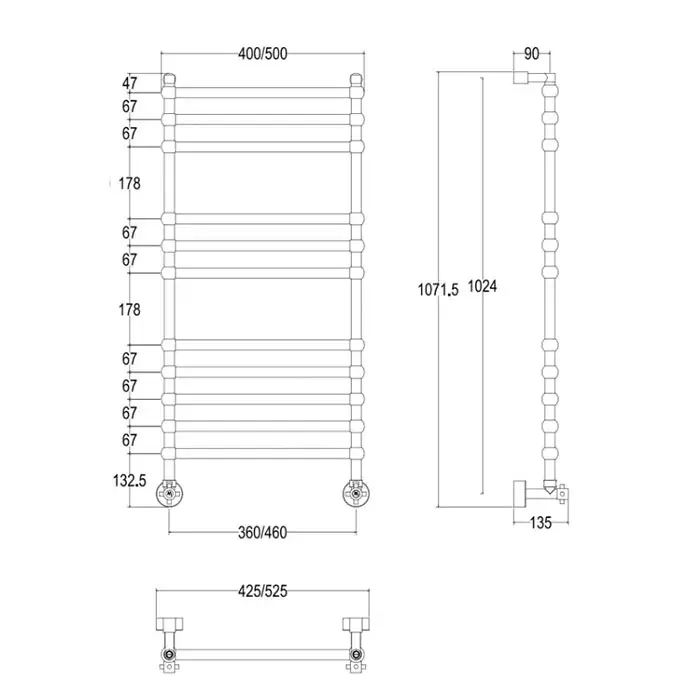Margaroli Sole 464/TS/11 Полотенцесушитель водяной для ГВС 42,5х107h (int 36), нижнее, цвет: chrome 464TS3611CR