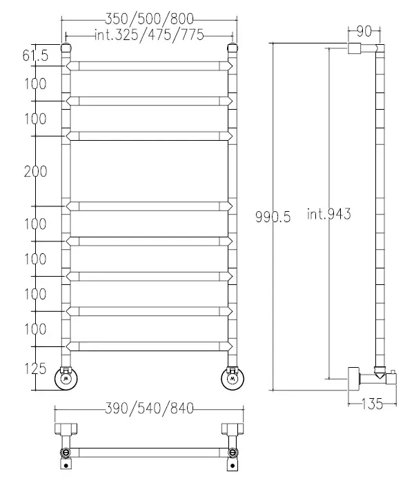 Margaroli Sole 514/14 Полотенцесушитель электрический 53х130h (int 47), выкл. справа, цвет: chrome 5144714CRNB