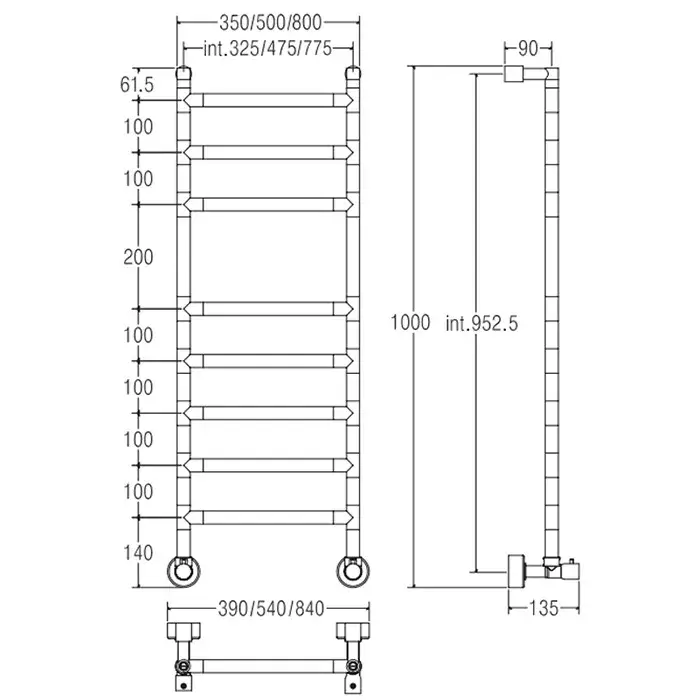 Margaroli Sole 484/8 Полотенцесушитель водяной для ГВС 54х99h (int 47,5), нижнее, цвет: chrome 4844708CRN
