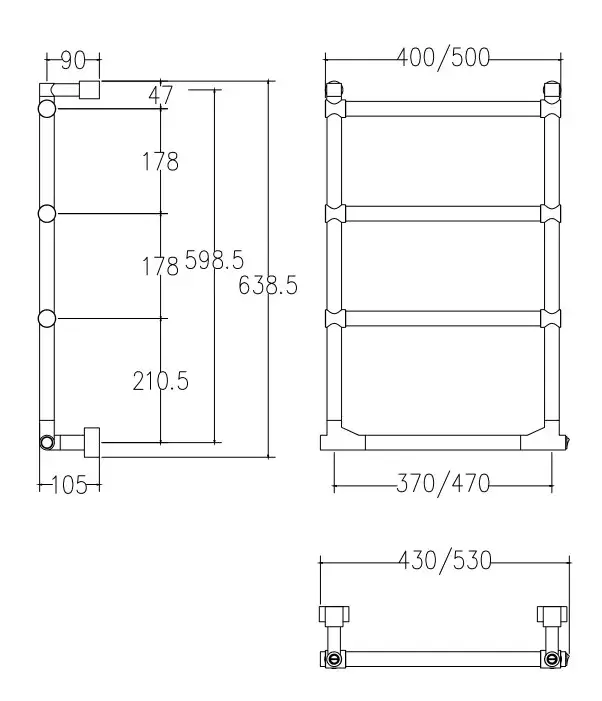 Margaroli Sole 542 Полотенцесушитель электрический 57х66h (47), выкл. справа, цвет: matt black 5424704NONB