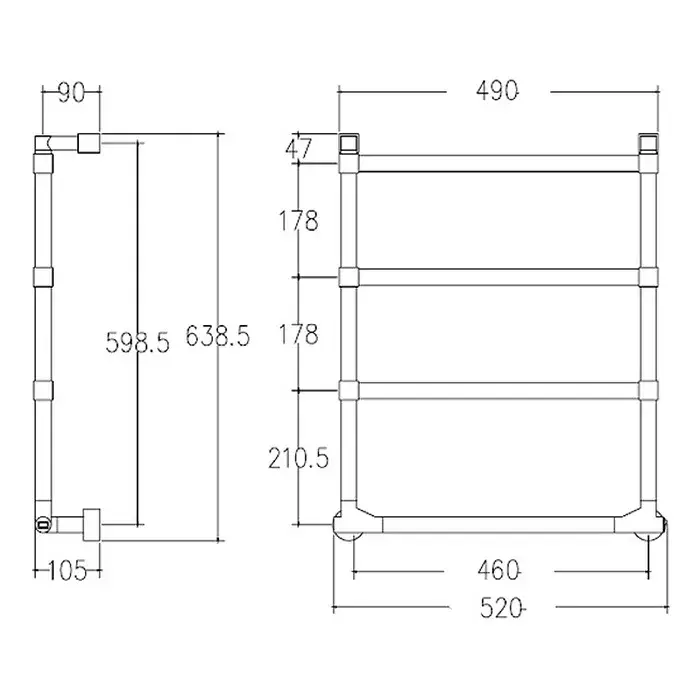 Margaroli Sole 512/TS Полотенцесушитель электрический 52х64h (46), выкл. справа, цвет: black chrome 512TS4604CRBB