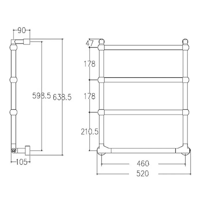 Margaroli Sole 512/TS Полотенцесушитель электрический 52х64h (46), выкл. справа, цвет: black chrome 512TS4604CRBB