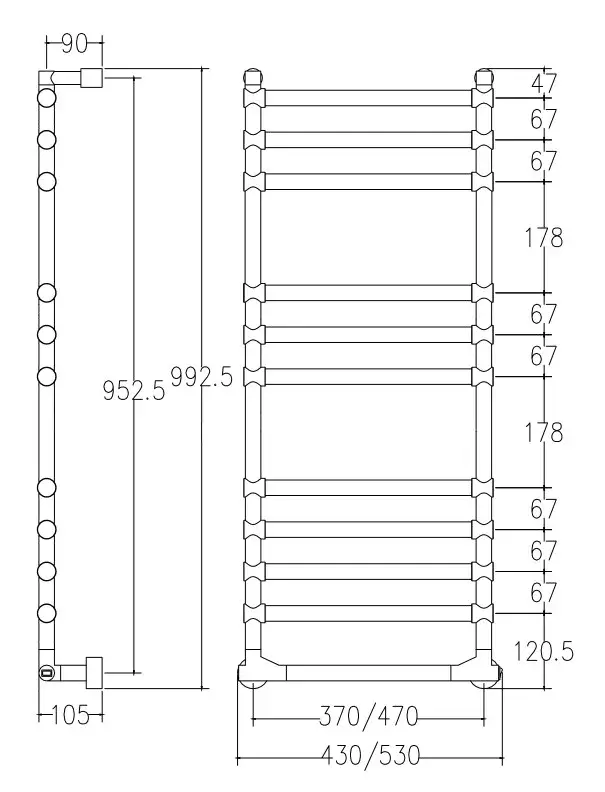 Margaroli Sole 514/14 Полотенцесушитель электрический 53х130h (int 47), выкл. справа, цвет: chrome 5144714CRNB