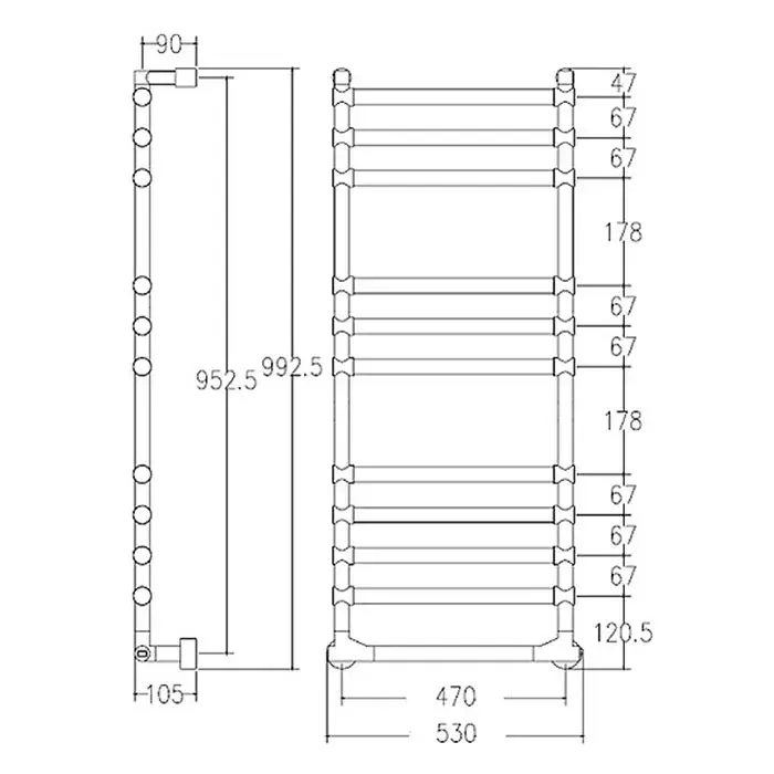 Margaroli Sole 514/11 Полотенцесушитель электрический 53х99h (int 47), выкл. справа, цвет: chrome 5144711CRNB