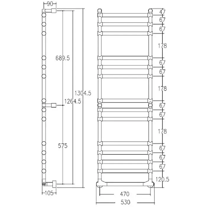 Margaroli Sole 514/14 Полотенцесушитель электрический 53х130h (int 47), выкл. справа, цвет: chrome 5144714CRNB