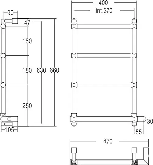 Margaroli Sole 542 Полотенцесушитель электрический 47х66h (int 37) выключатель справа, цвет: chrome 5423704CRNB