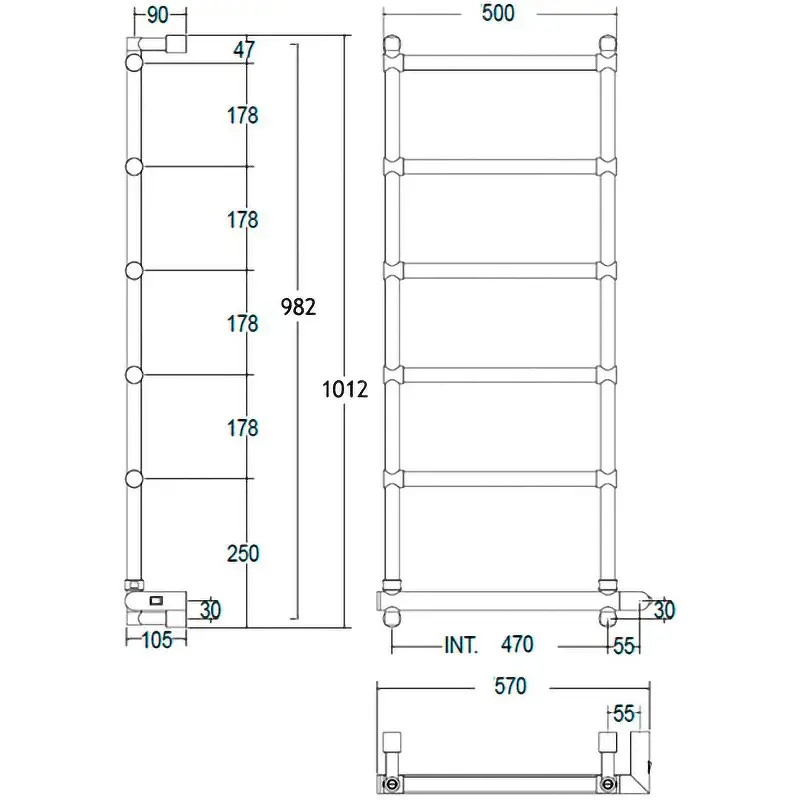 Margaroli Sole 542 Полотенцесушитель электрический 57х101h (47) выкл. справа, цвет: bronze/old brass 5424706OBNB