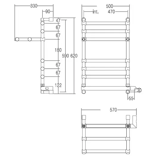 Margaroli Sole 512/TS Полотенцесушитель электрический 52х64h (46), выкл. справа, цвет: black chrome 512TS4604CRBB