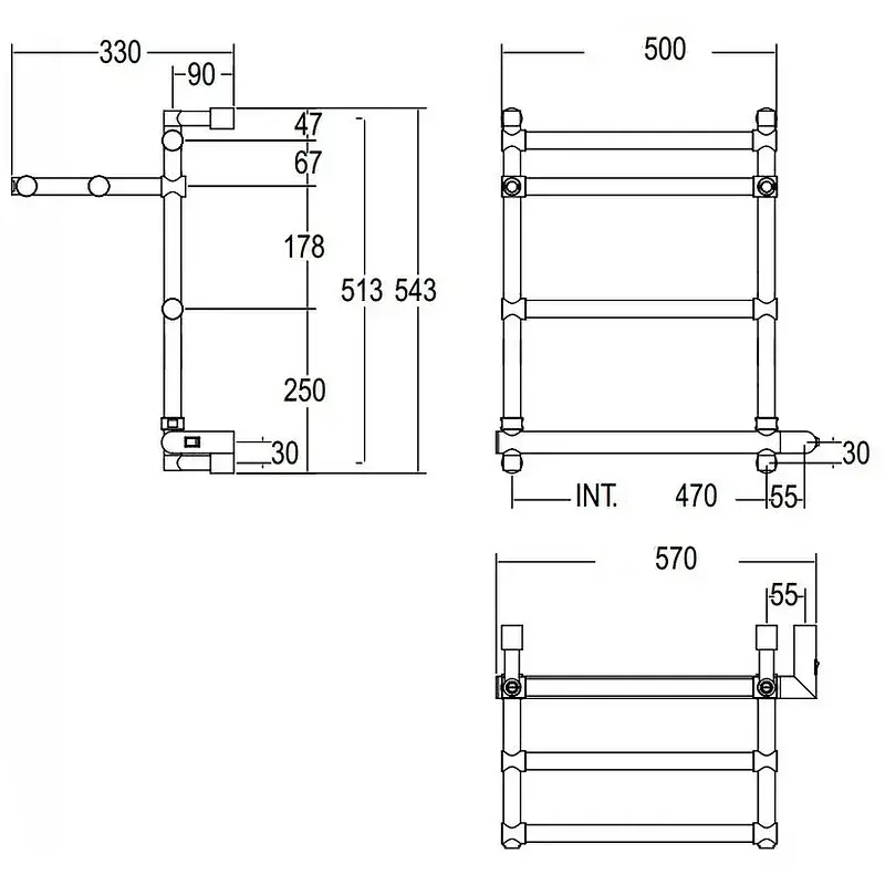 Margaroli Sole 512/TS Полотенцесушитель электрический 52х64h (46), выкл. справа, цвет: black chrome 512TS4604CRBB