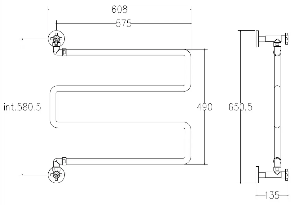 Margaroli Vento 500/SP Полотенцесушитель электрический поворот. 55,5х64h (57,5) нижнее, цвет: chrome 500SPCRB