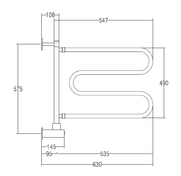 Margaroli Vento 500 Полотенцесушитель электр. поворотный 54,7х57,5h (53) нижнее, цвет: satin crome 500547SAB