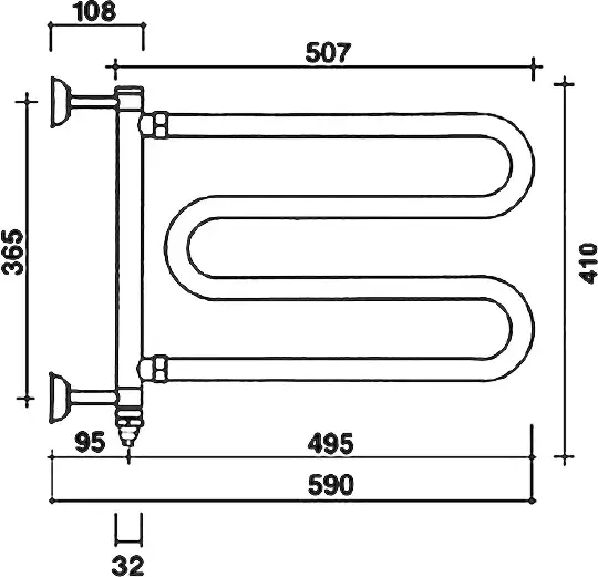 Margaroli Vento 500/SP Полотенцесушитель электрический поворот. 55,5х64h (57,5) нижнее, цвет: chrome 500SPCRB
