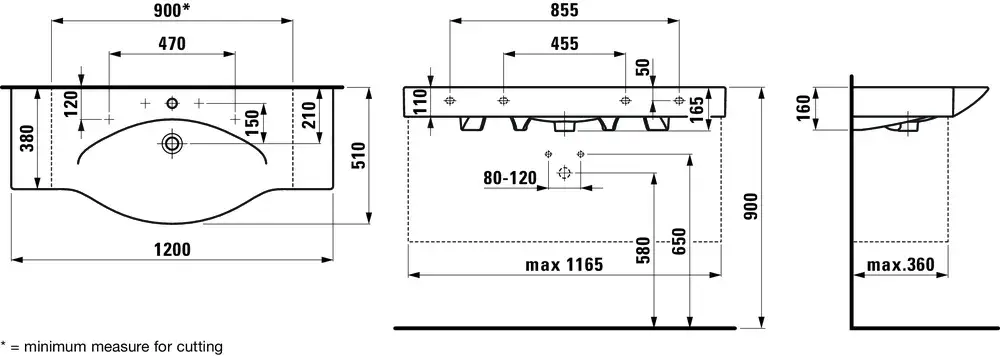 Laufen Palace Раковина консоль подвесная/накладная 90х51х11см, с 1 отв. под смеситель, цвет: белый