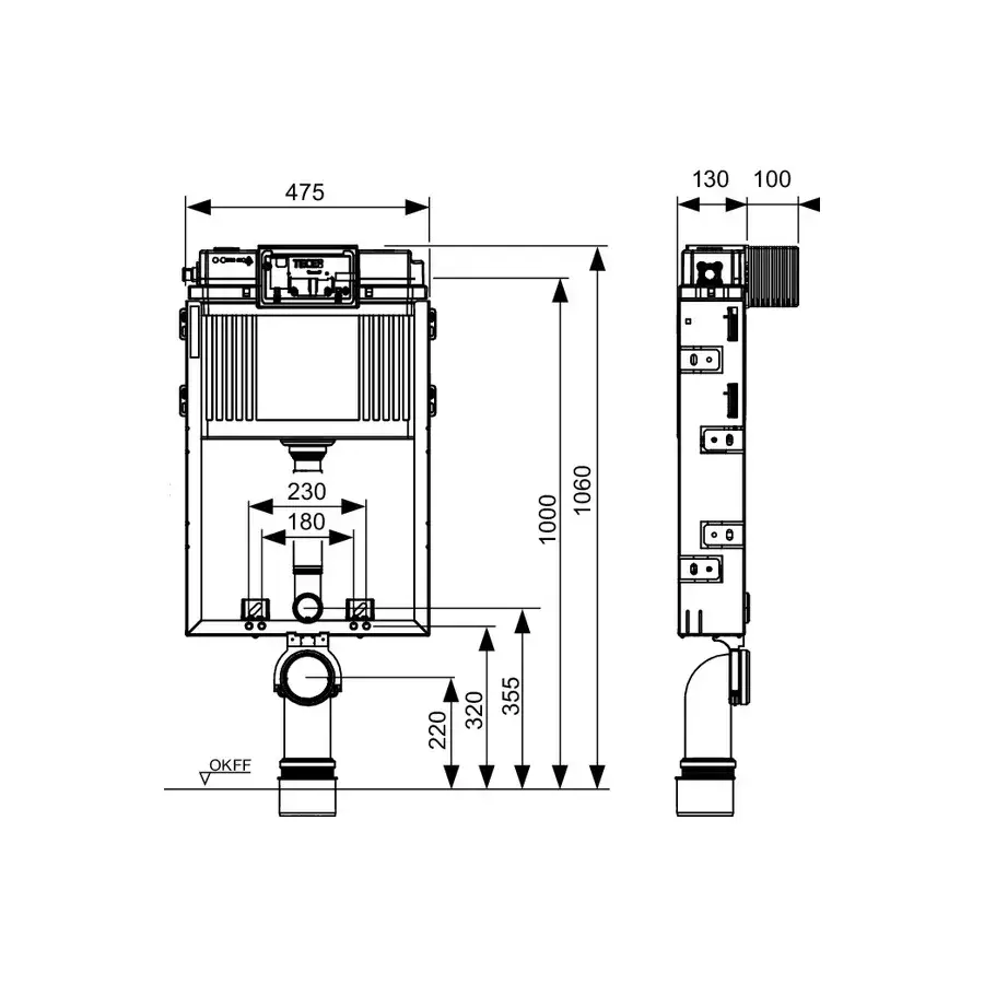 Модуль для установки подвесного унитаза на капитальную стену Tece TECEprofil