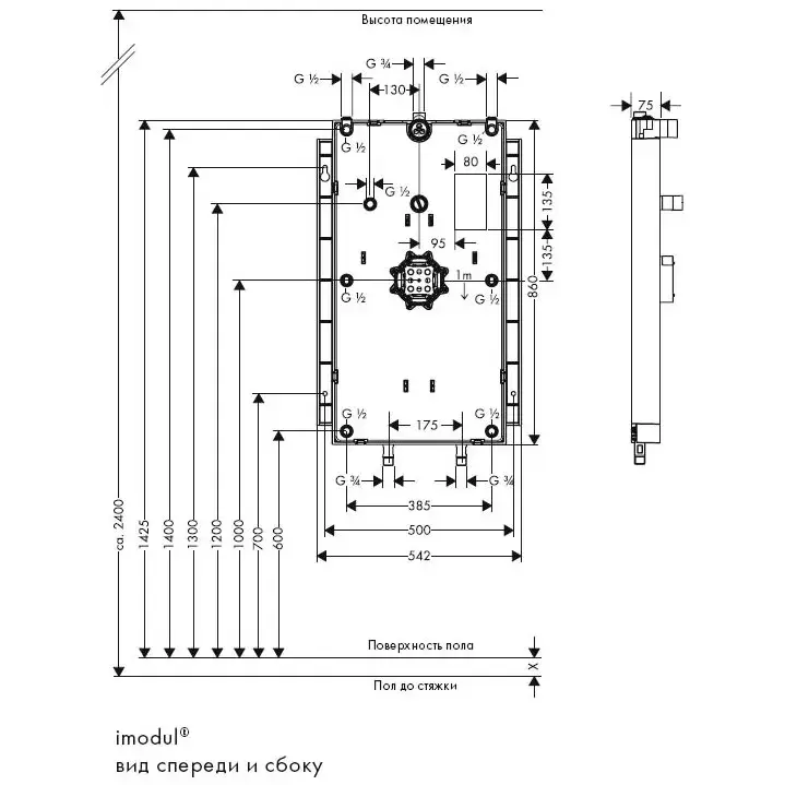 Модуль монтажный I-Modul для душевой панели, для скрытой установки 54.2*7.5*h86
