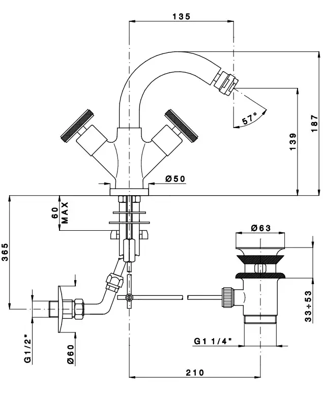 Nicolazzi Arena Смеситель для раковины на 3 отверстия, с донным клапаном, излив: 176 мм, цвет: хром