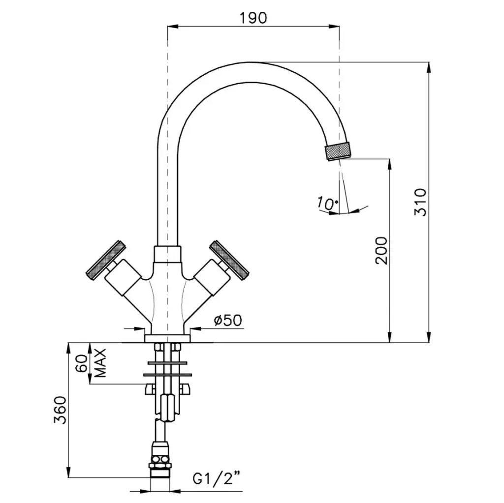 Nicolazzi Arena Смеситель для раковины двухвентильный на 1 отверстие, цвет: хром 3306CR44