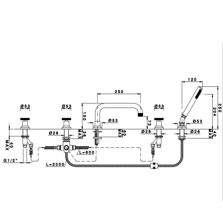 Nicolazzi Arena Смеситель на борт ванны на 5 отверстий, излив 25 см, цвет: хром 3324CR44