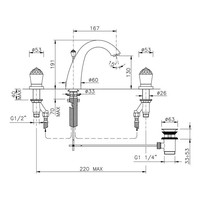 Nicolazzi Cristallo Смеситель для раковины на 3 отверстия, излив 16,7 см, цвет хром 2009CR22