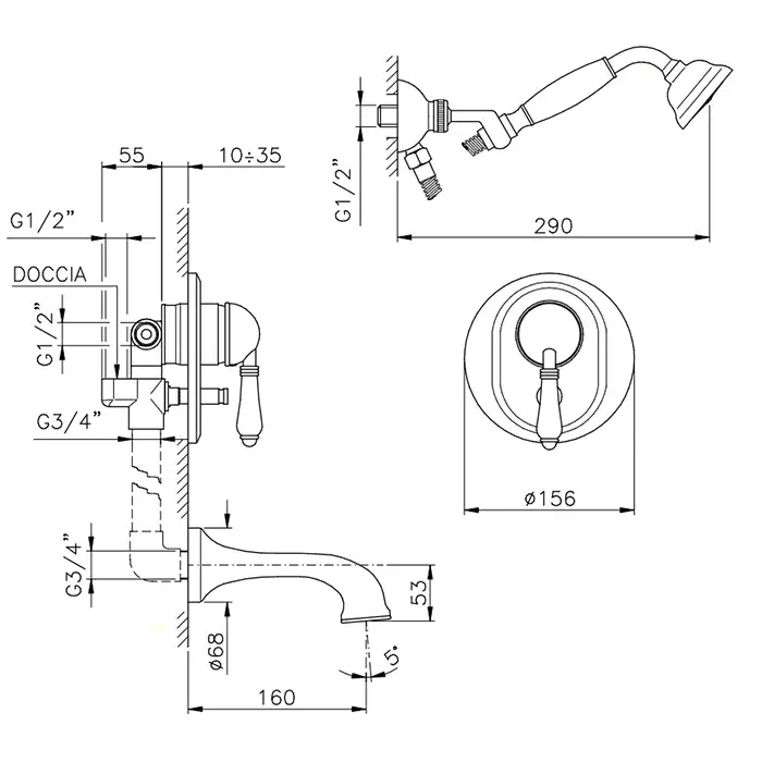 Nicolazzi Cristallo Встраиваемый смеситель для душа с переключением, 2 источника, цвет: хром