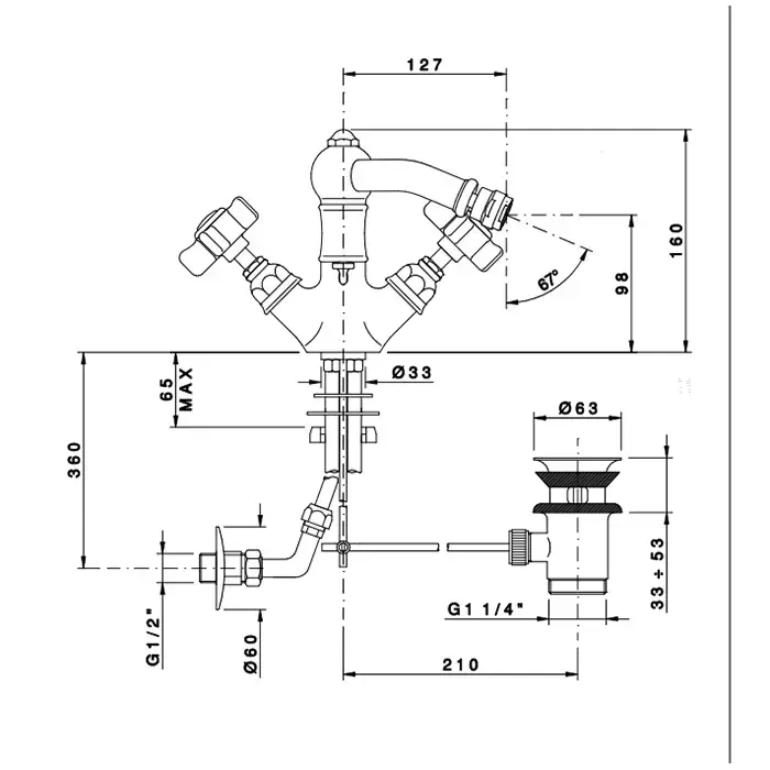 Nicolazzi Dames Anglaises Смеситель для биде, на 3 отв., с донным клапаном, цвет: бронза