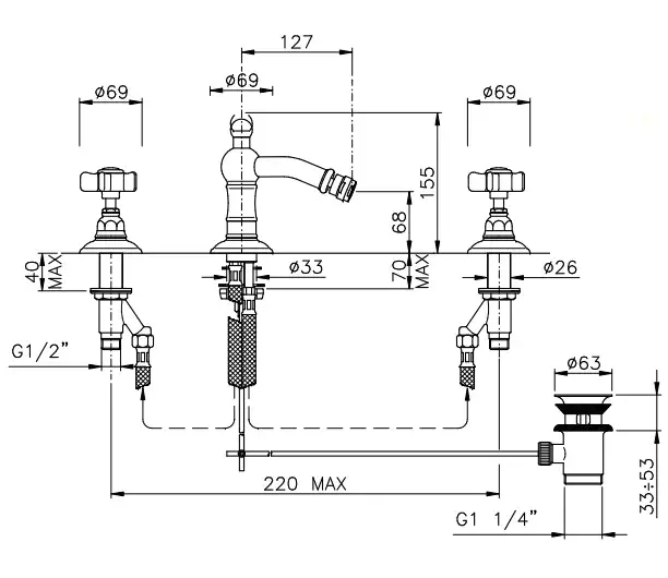 Nicolazzi Dames Anglaises Смеситель для биде, на 3 отв., с донным клапаном, цвет: бронза