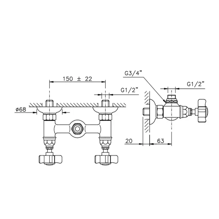 Nicolazzi Dames Anglaises Смеситель для душа с 2-мя ручками, вывод сверху 1/2, цвет: хром 1425CR18