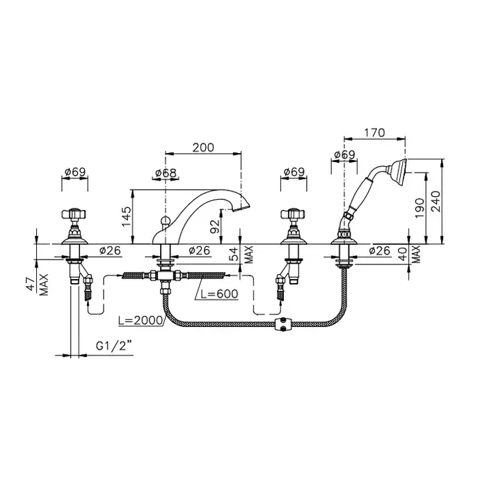 Nicolazzi Dames Anglaises Смеситель на борт ванны, на 4 отв., с переключателем, цвет: хром 1404CR18