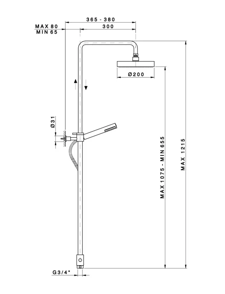 Nicolazzi Doccia Душевая стойка с верхним душем d20 см, 20x121,5h см, цвет: хром 5714WSCR20