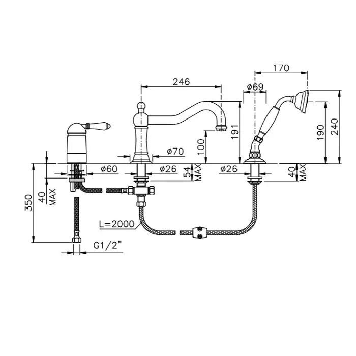 Nicolazzi Forest Смеситель на борт ванны на 3 отверстия, с изливом 24,6 см, цвет хром 3449CR77