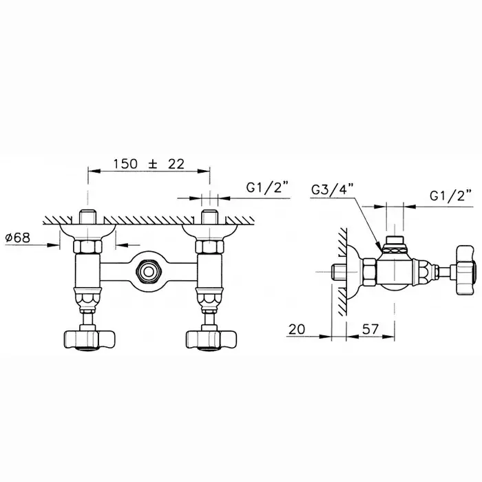 Nicolazzi Half Dome Смеситель настенный для раковины с 2мя ручками, цвет: хром