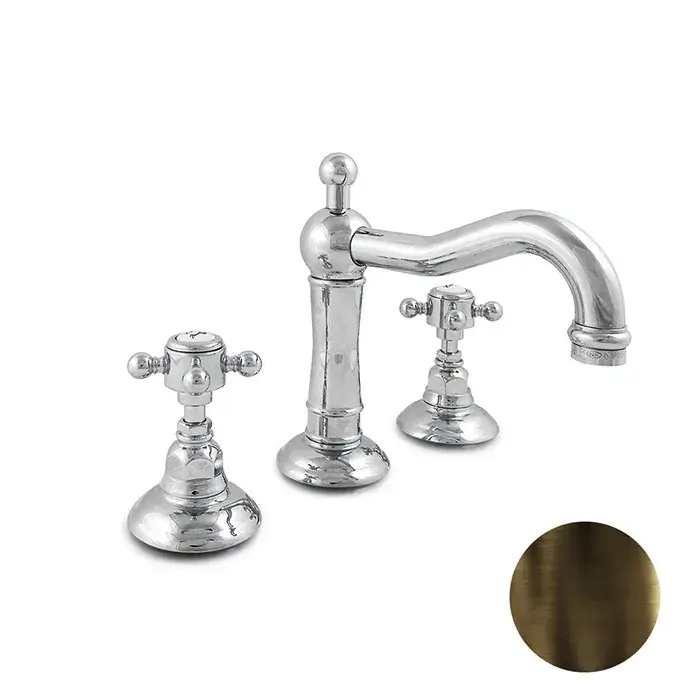 Nicolazzi Half Dome Смеситель для биде с 2мя ручками, на 1 отв., с донным клапаном, излив 127мм, цвет: натуральная латунь
